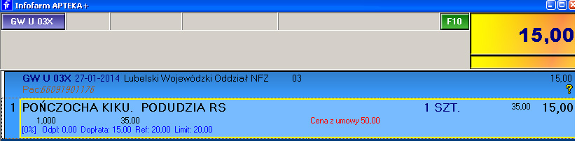 - Automatyczne rozliczanie sprzedaży refundowanej, w zgodzie z obowiązującymi przepisami, z uwzględnieniem dodatkowych uprawnień pacjenta i z możliwością sprzedaży kilku rodzajów wyrobów na jedno zlecenie (pieluchomajtki).